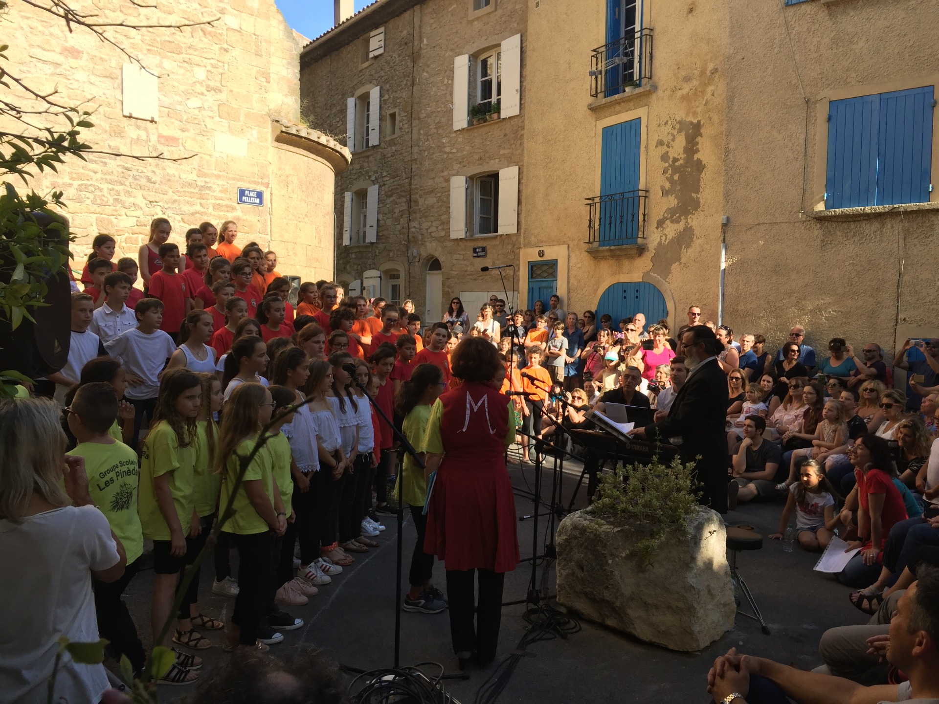 Lançon de Provence, le 1er juin 2018, représentation de l'opéra pour enfant de Julien Joubert, Nous n'irons pas à l'opéra, dans le cadre de la 11ème édition du festival Musique à la Ferme, avec les élèves et les maîtresses des classes de CM1-CM2 des quatre écoles de Lançon.